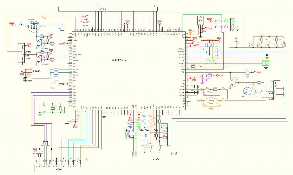 Итак, о чем речь. Контроллер похож на китайский по функционалу, ТТЛ отсутствует, плюс выведены все программные доработки ancc, триггер второй камеры, дебуг, I2C для прошивки и для внешнего подключения. Блок питания изменен, на HDMI установлены защитные диоды. VGA тоже присутствует. Что получаем, паять не надо на контроллере ничего, все уже есть. Размер 80х60мм. Размеры по отверстиям 58х49. Питание процессора стабильное. Разьем HDMI возможен как на плате так и "на шнурке"(опция). На входе полевик, теперь полярность "путать" не страшно, контроллер не сгорит. Появилась функция оперативного отключения подсветки монитора внешними средствами(опция). Диапазон рабочих напряжений 7в-24в. Окончательная ревизия платы, больше переделывать не буду. На данный момент собираюсь заказывать такую же, но с двумя БП. Второй БП настраиваемый. Контроллеров с ТТЛ больше нет и не будет Купить можно тут. Добавленная схема в моей небольшой доработке, но в принцине и к чинскому подойдет. Блок питания не рисовал, может со временем.... Последний раз редактировалось basurman; 04.08.2018 в 04:06. |