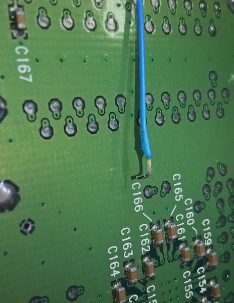 Теперь к выбранной контактной площадке подставляем "крючок", фиксируем проводок (у меня есть каптоновый скотч- я воспользовался им, но можно и простым лейкопластырем).