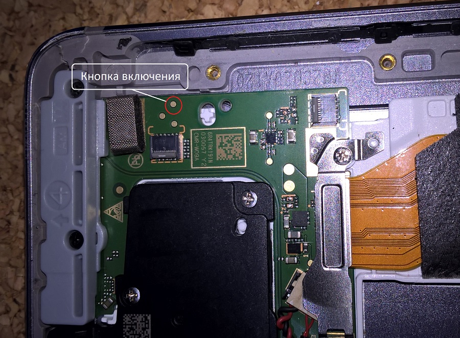 Управление планшетом по "нажатию" на кнопку питания. Нужный пятак нашёлся под шлейфом кнопок у самого разъёма. Блок кнопок нужно снять вместе со шлейфом и тогда можно припаять провод управления к открывшемуся пятаку.