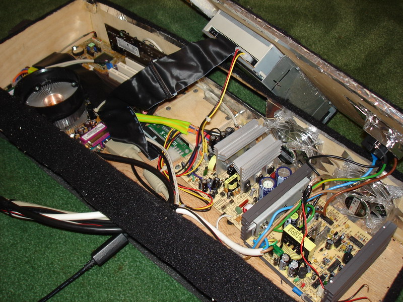 монитор Prology PCM700 проц Pent 4 3.2 Cedar Mill системная плата ASUS I945 VIDEO DIMM DDR2 1024 HDD 2.5 120Gb Creative X-Mod GPS GlobalSat 355 Wlan D-link Bluetueth пульт универсальный logitech DVD-ROM внешний БП SL в третьем варианте корпус был сделан из белого пластика, склеен и покрашен в черный металик, тоже было сделано и передней планкой, покрашено было супер, выглядит как штатная. ну как??? нормально?? |