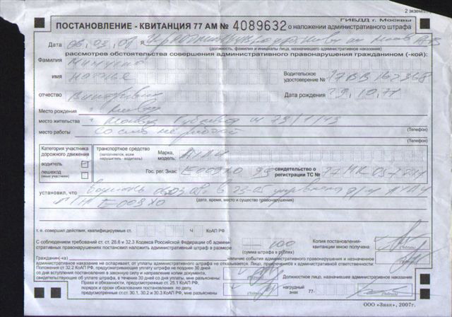 это копия квитанции, а вот в оригинале что они написали - не известно, лень им иногда сразу заполнять, а может и план выполняют по определенным нарушениям