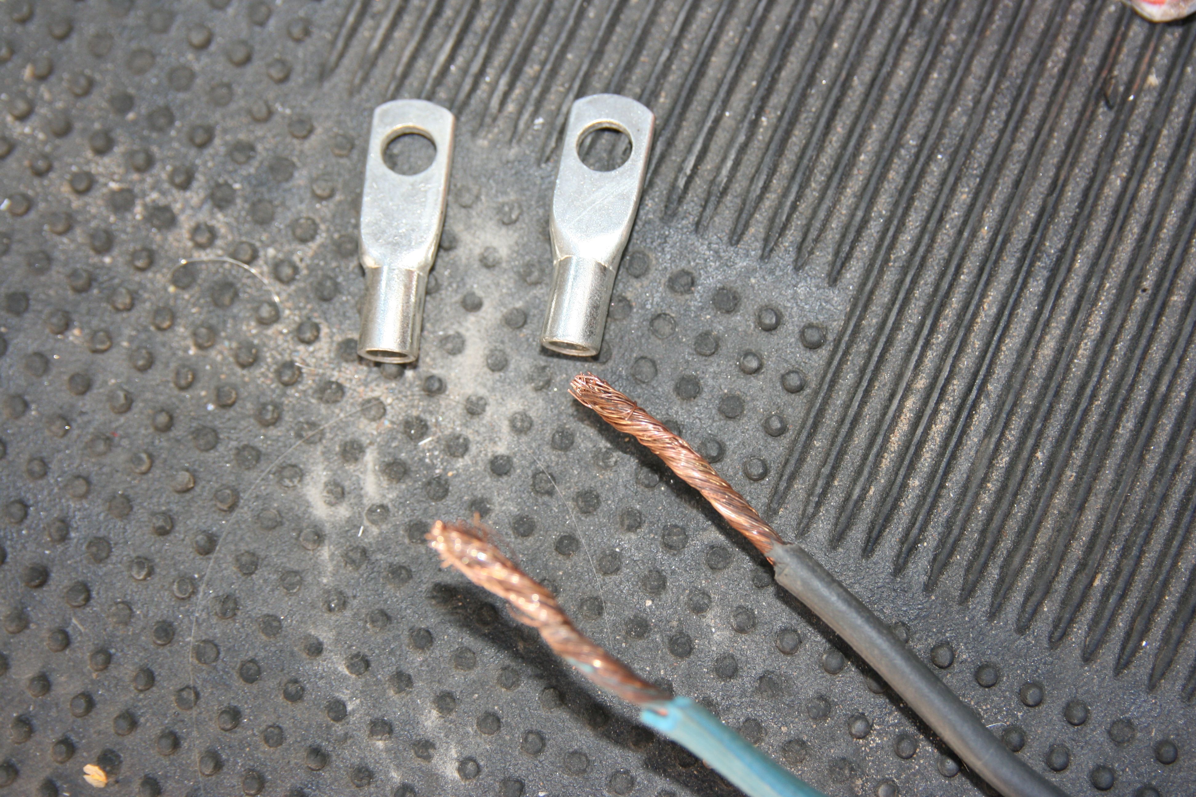 от батареи 6 кв.,а после соединения те что в комплекте с бп были,скрутка под гайку термоусадка и изолента для надежности...