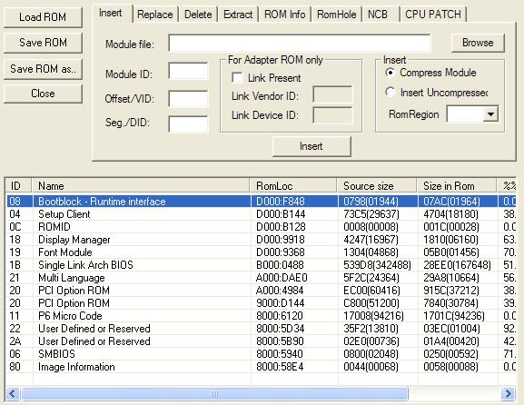 4) при помощи mmtool в прошивку биоса обратно вставляем отредактированный блок звуковухи и сохраняем в файл