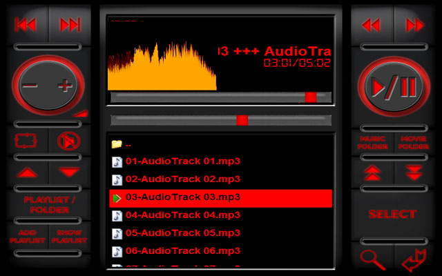 Вначале темы вложил новый зип (InCarTerminal2.zip). Теперь, если правильно выполнить пункты первого абзаца, ко всем предыдущим улучшениям еще добавится слайдер - position bar. Это такая полоска, на которой красная точка показывает относительную позицию проигрываемого файла - неважно, толи это длинный смиксованный трек или фильм. До этого в красном скине прокрутка была нефонтан.